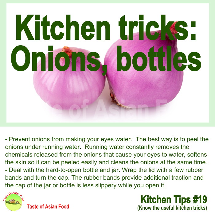 – Prevent onions from making your eyes water. The best way is to peel the onions under running water. Running water constantly removes the chemicals released from the onions that cause your eyes to water, softens the skin so it can be peeled easily and cleans the onions at the same time.