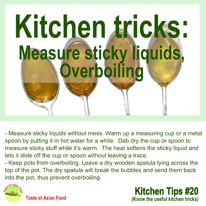 Slide #20: kitchen tricks: Measure sticky liquids, Overboiling