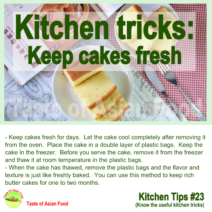 – When the cake has thawed, remove the plastic bags and the flavor and texture is just like freshly baked. You can use this method to keep rich butter cakes for one to two months.