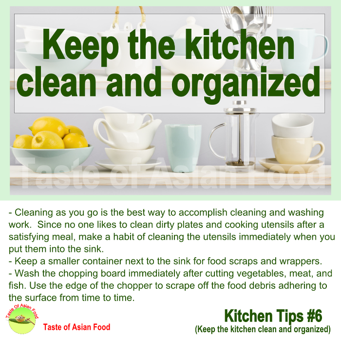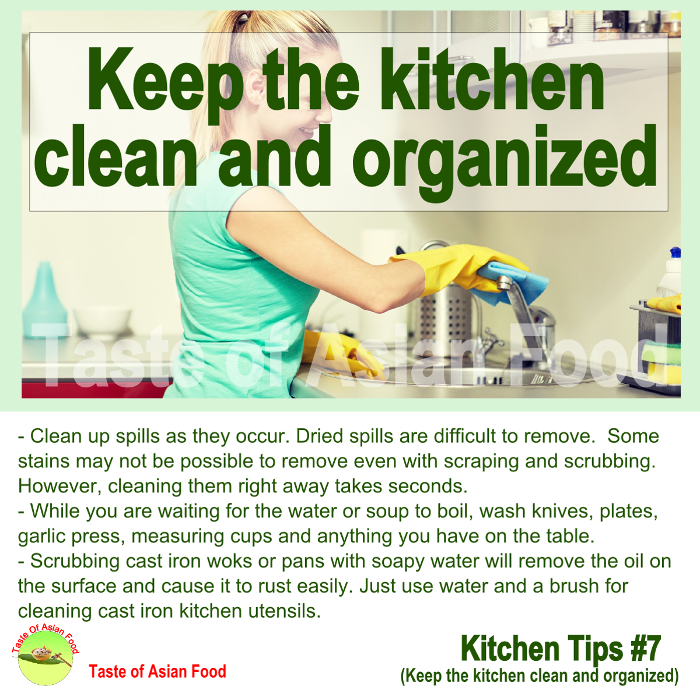 – Cleaning as you go is the best way to accomplish cleaning and washing work. Since no one likes to clean dirty plates and cooking utensils after a satisfying meal, make a habit of cleaning the utensils immediately when you put them into the sink.