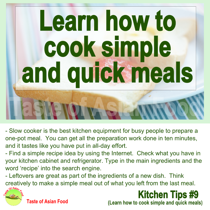 – Mastering a few one-pot recipes is a way to save time cleaning up. Fried rice or pasta are easy one-pot meals.