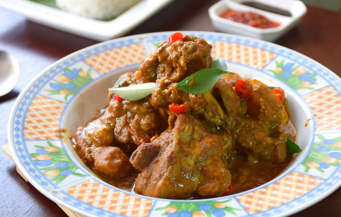 The flavor from the bone and the marrow adds body to the curry, and therefore, the locals do not need a stock to cook. You can substitute the water with a cup of chicken broth if you prefer to use boneless chicken thighs.