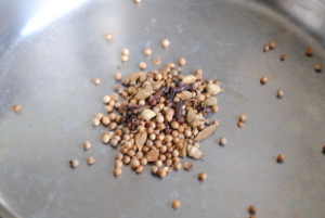 – Roast the coriander seeds, cumin seeds, dry chili, and cardamom pods until fragrant.