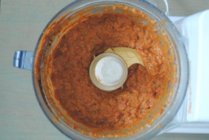 – Put all the ingredients into an electric food processor and blend until it forms a uniform paste.