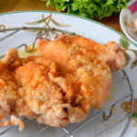 - Deep fried the chicken immediately after dipping it into the mixture of rice and potato flour. If you set it aside for too long, the chicken will absorb the flour coating and it will no longer turn out crunchy and crispy.