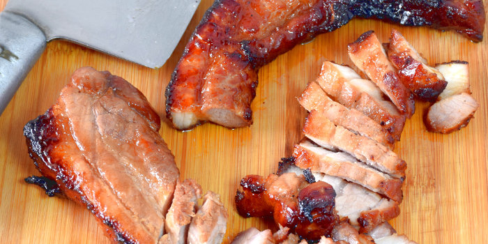 A good Char Siu should have a glossy surface with the trademark dark mahogany color. The meat is tender and moist inside with the slightly charred and caramelized on the outside. When you take a bite to a piece of Char Siu, you will first taste the sweetness of the maltose, followed by the aroma of the slightly charred flavor, and finally, succumb to the juicy and succulent meat marinated for hours.