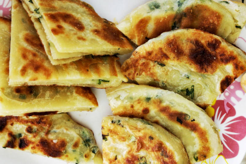 Chinese scallion pancake (Cong You Bing, 葱油饼) is not like any other pancake familiar to most of the people. It has a crusty and crispy surface, with scallions sandwiched between layers of pastry inside. It is a refreshing, delightful, and easy to make flatbread.
