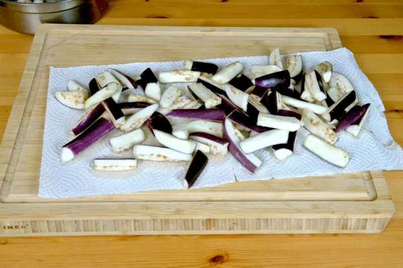 […] won’t go into detail about how to prep the eggplant. Please refer to this article, which explains the steps clearly. Let’s assume you’ve already prepared it and cut it […]