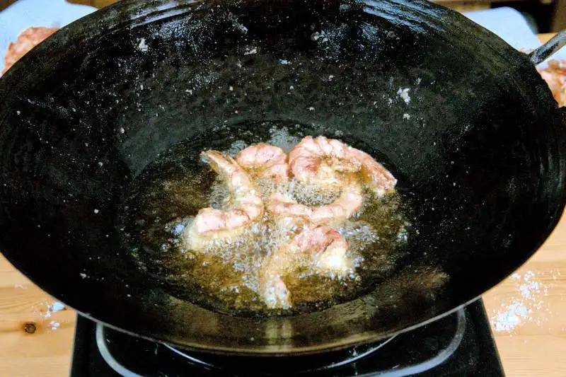 - Marinate them with Shaoxing wine, ground white pepper, and a small pinch of salt for 15 to 30 minutes. After marinating, coat the shrimp evenly with corn flour before deep-frying.