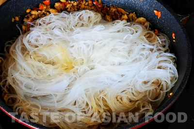 - The first method is to cook over lower heat. Add a few tablespoons of water to the sauce, then add the glass noodles and stir-fry until the noodles absorb all the liquid. This method works best if you don’t have a high-powered stove and need to cook the glass noodles a bit longer. Adding water helps prevent them from drying out or sticking.