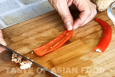 - For the other supporting ingredients, you’ll need minced ginger, minced garlic, and chopped red chilies. I also prepared some extra chopped scallions (green onion) to use as a garnish just before serving.