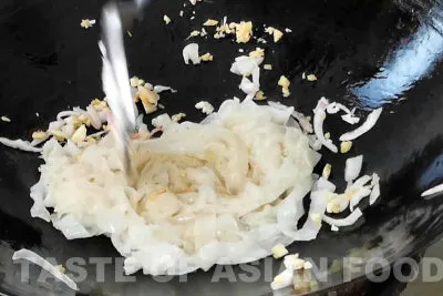 - Saute the onion and garlic and add to the ho fun. Add the bean sprouts in small batches.