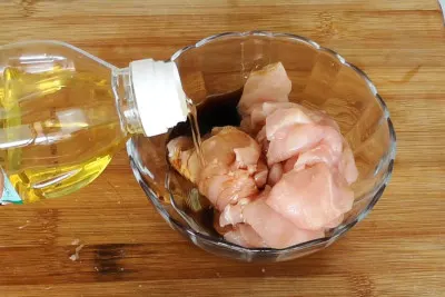 • Cut the chicken meat into bite-size (or bone-in chicken chunks)