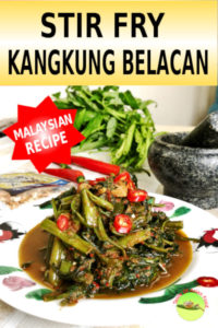 Stir fry kangkung with belacan is an authentic home cook food for the Malaysian. It’s so well accepted that it has to assimilate into the cooking culture of different ethnic groups.