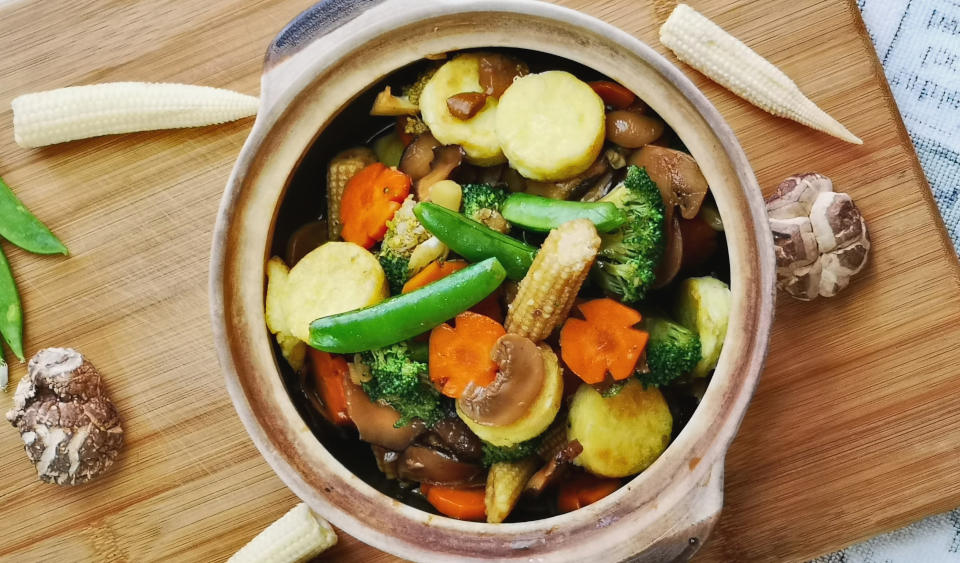Three cups chicken (San Bei Ji) is so attractive because of its simplicity to prepare and concentrated flavor. Traditionally it is served bubbling hot in an earthenware pot with steamed rice or rice congee.